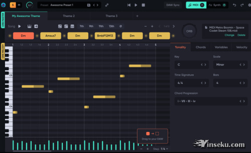 轻松导出和导入:只需简单的拖放,MIDI 就会在您的 DAW 中。集成到您的工作流程中非常简单。