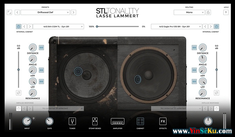 Tonality Lasse Lammert 可叠加四个音箱。拉塞在德国的工作室拍摄,确保画面极为准确。Brit 12GM是最具代表性的复古音色箱体。它能驾驭从略微破碎音色到复古激流金属的各种曲风。Cali Rect V30 超大号音箱是打造现代音色的绝对首选。扬声器低频干净却极具冲击力,音质顺滑,带来可控且“完整”的声音。Eagle Pro VSB是现代激进音色的基准。它有一个非常专注的中频,轻松穿透混音。Gasoline 412 拥有现代且激烈的音色,但音色更暗,低中频推力较强。扬声器为更难控制的声音增添了新特性,适合老金属音乐。