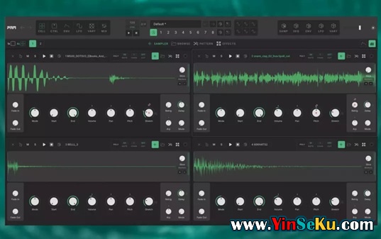 单元视图:每个单元四个视图:采样器控件、采样浏览器、模式编辑器和效果链。可即时切换。