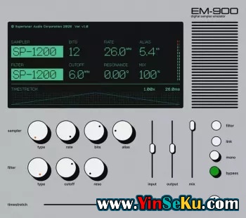 EM-900 精细模拟了 80 和 90 年代 17 款传奇采样器的 DAC 电路、低通滤波器拓扑结构和信号特性。随便用它,立刻为你的声音增添温暖、粗糙、低保真个性的感觉。