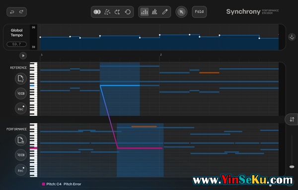 同步表演编码器是一款用于音乐表演分析的工具,采用新的配乐导向方法加快速度映射过程。只需从你的乐谱软件导入乐谱,并使用录音功能直接录制演出到Synchrony。Synchrony的高级MIDI对齐算法会即时找到这两者的对齐,然后生成一个速度,你可以拖拽到DAW或导入乐谱软件。