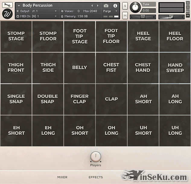 Kontakt的这个样本库具有24种人体打击乐的关节。