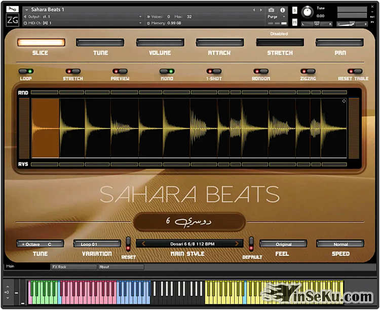 – 独立控制每个切片的随机,反向,调谐,音量,攻击,拉伸,之字形,平移,感觉,速度,倍频程和切片声音参数。