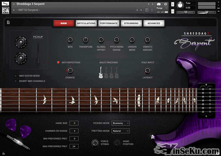 Shreddaqe 3 Serpent是Impact Soundworks吉他和贝斯乐器新世界的第一章。在创建此示例库时,我们借鉴了近十年的经验和客户对我们以前吉他的反馈。我们完全从头开始创建了一个新的引擎 – Shreddaqe 3(或简称S3) – 融合了5.7版中提供的最新Kontakt技术和工具。