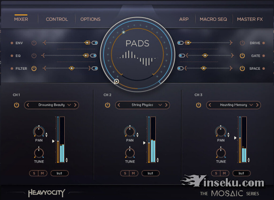 Mosaic Pad鼓舞人心的内容提升了这些合成声源,但其真正的力量在于当它们在动态Mosaic引擎的三个通道上分层时所创造的激动人心的组合。