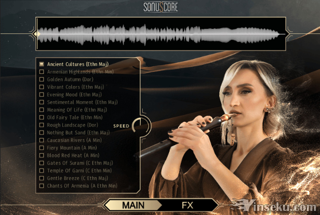 之声 古老的杜杜克短语让您穿越时空。杜杜克乐器起源于1500多年前的亚美尼亚,被列入联合国教科文组织非物质文化遗产名录,并已进入无穷无尽的音乐作品中。大簧片营造出色彩缤纷的音色,非常适合大气配乐,是管弦乐调色板的绝佳补充。这款富有想象力的乐器带有现场录制的短语和令人难以忘怀的连奏补丁。