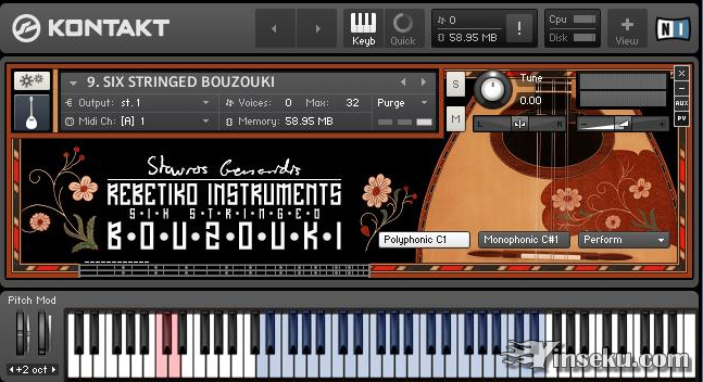 虚拟 Bouzouki 样本库加载各种颤音,您可以使用调制轮实时更改速度。用户还可以触发按键开关来播放复音或单音。当玩家不想要任何锤子或拉下时,使用复调。单音使用锤子和拉到一个大三号的范围。