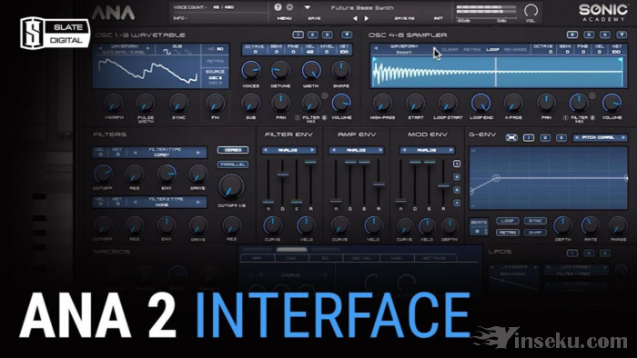 导入 ANA 2 中的 3 个采样器振荡器之一,或从随附的声音库中进行选择,以使您的预设脱颖而出。