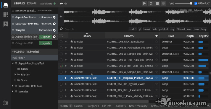 文件夹,所有可用信息(速度,音高,噪声量,谐波含量等)都从您的文件中收集并存储在数据库中。这确保了您在搜索、过滤和分类大量样本时快速访问。