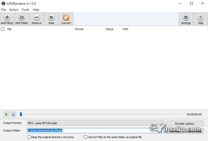 MIDIRenderer支持所有流行的输出格式。MIDI 到 MP3?没问题!需要更高的质量?使用无损格式,如 FLAC 或 APE。您甚至可以将移动设备的 MIDI 转换为 AMR 格式。