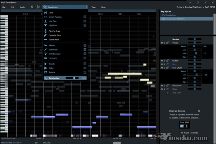 混音器:以自动匹配的速度在音轨之间复制和粘贴部分,甚至更改键。