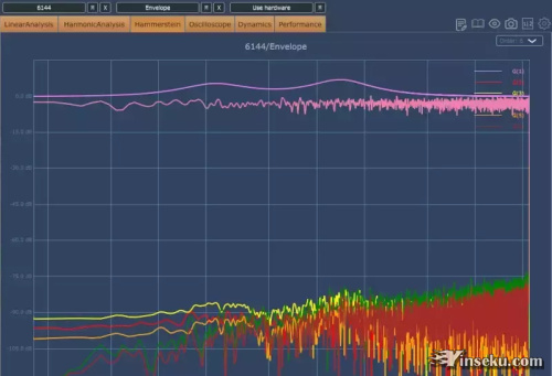 最高品质,双精度FFT引擎,独立的立体声通道分析 线性分析:使用增量或随机输入信号进行幅度和相位响应 谐波分析:对正弦输入信号