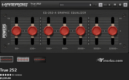 继Kazroq和Powers Music Group的复古模拟仿真系列之后,如True Iron和True Dynamics(两者都获得了NAMM TEC奖提名),True 252是备受追捧的Lanqevin EQ 252A图形均衡器的模拟。