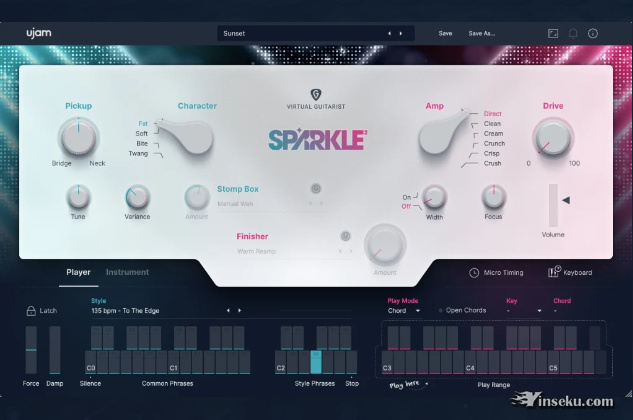 虚拟吉他手 SPARKLE 2 基于定制的复古吉他,利用其单线圈拾音器获得传奇和永恒的钟声。就像著名的物理乐器一样,SPARKLE 2 是一款多功能乐器,有 30 种不同的风格,包含 350 多个乐句,可在作曲时立即满足。