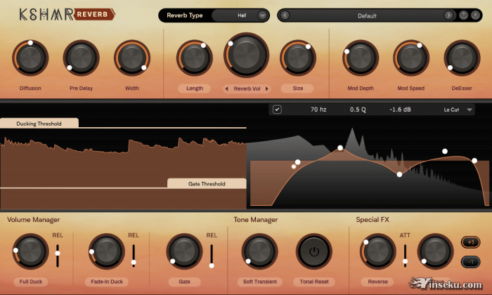 外,KSMR 混响还具有多个特殊功能面板;音量管理器,音调管理器和特殊FX。这些功能有助于以独特的方式塑造混响尾音。这使您的原始信号能够重击,然后通过手术形状进行混响,以提供丝滑氛围的受控感觉(如果您愿意,可以发出更强大的效果)。
