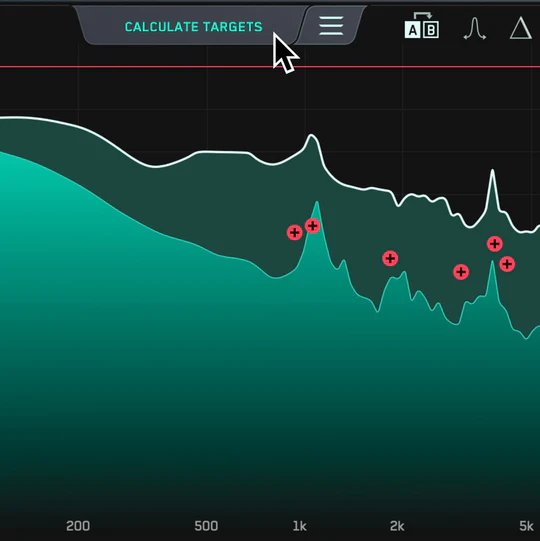 亮点1: 计算目标功能将分析您的音频,找到共振频率,并为您提供“目标节点”,显示建议减少多少以透明地解决共振。