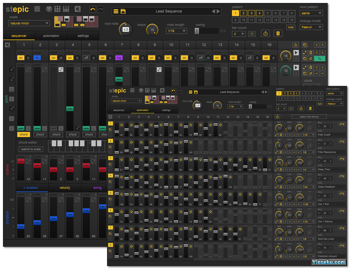 Stepic 不仅仅是一个强大且多功能的多音阶步进音序器。8 个额外且完全集成的调制序列器使其成为真正的音响塑造工具。用它们自动调节你喜欢的合成器或效果器的任何参数(如滤波器截止、波表位置、效果量)。凭借对 MIDI CC 的支持,Stepic 为软件插件和硬件设备提供参数控制。