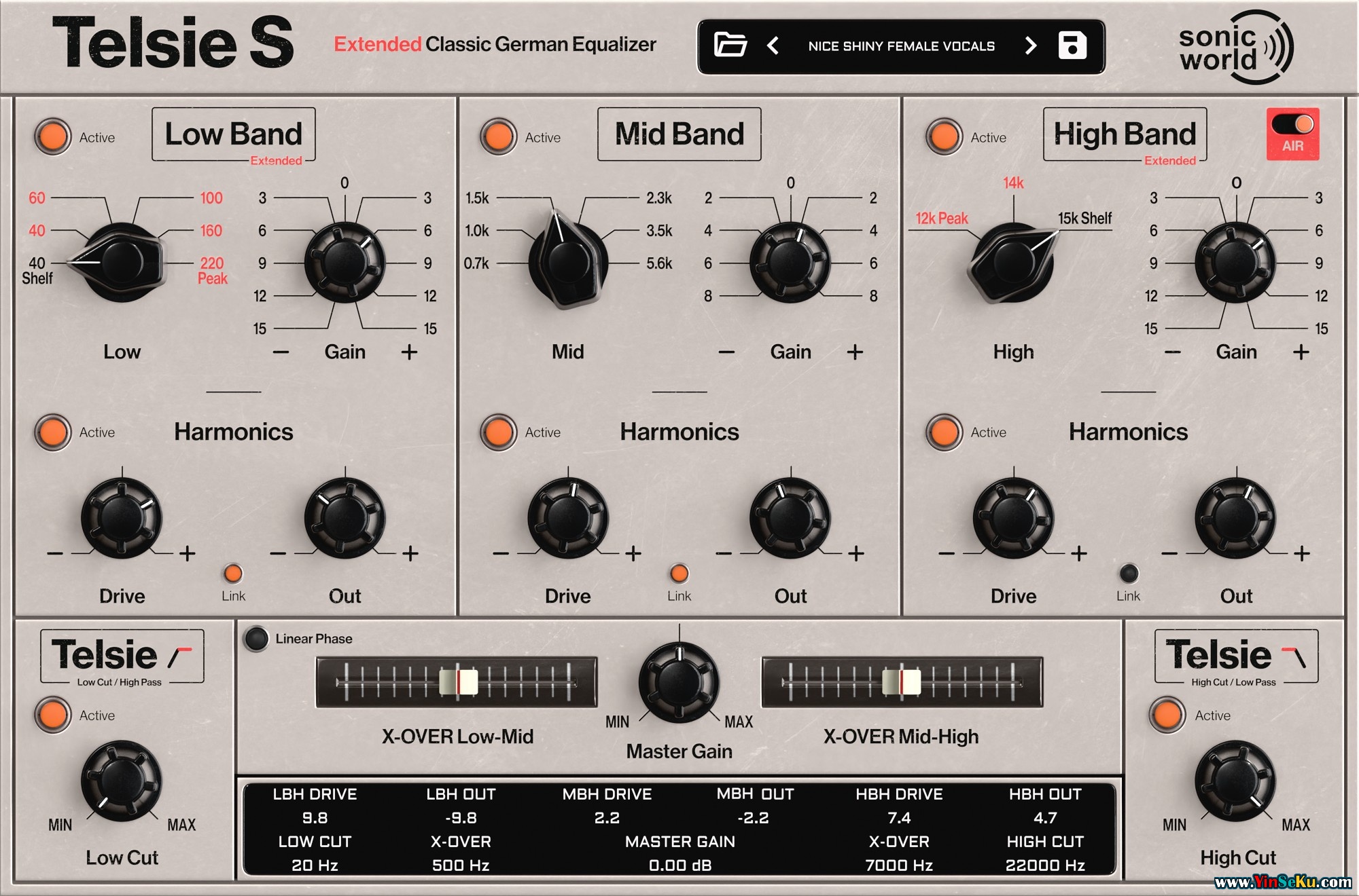 SonicWorld Telsie S 是一款基于1970年代著名的西门子 W295b 离散 A 类均衡器设计的三段均衡器插件。