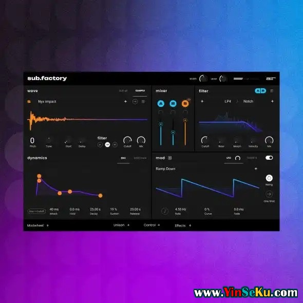 但对于喜欢从零开始的人来说,Sub Factory提供了一个灵活的平台,进行真正的声音实验。凭借打造任何次音色的能力,Sub Factory让你每次都能为节拍和作品调出合适的低音音色。
