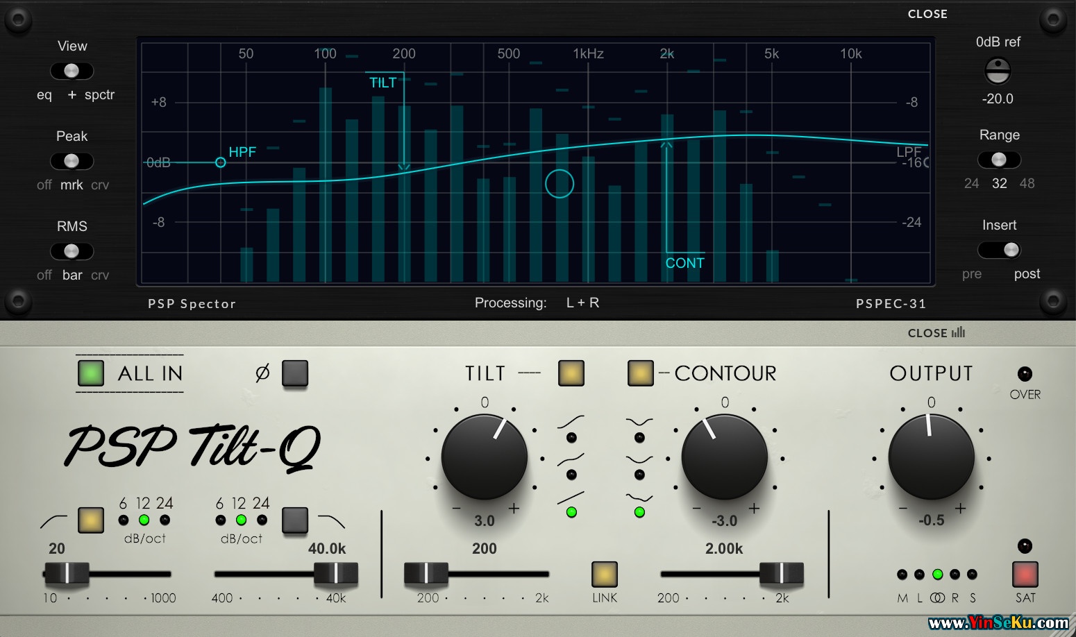 PSP Tilt-Q 采用 64 位双精度处理和 PSP 专有的软饱和技术,带来音乐效果而不刺耳——让你的混音听起来开放、连接且轻松。
