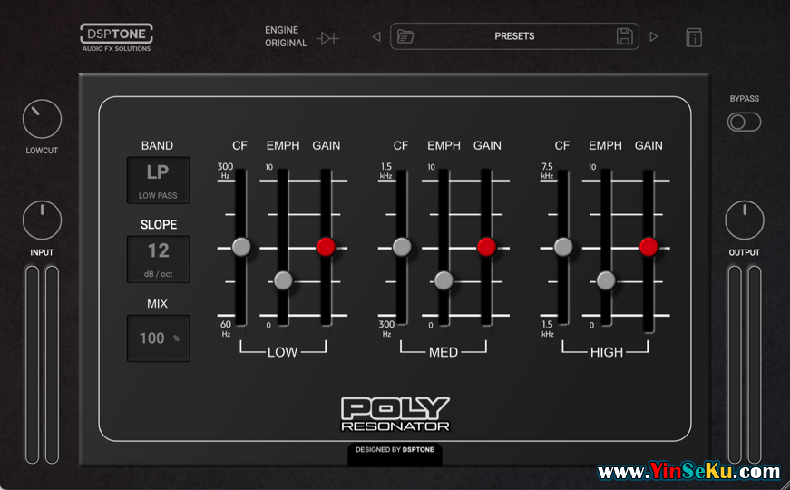 POLYRESONATOR位于均衡器、滤波器组和谐波增强器之间的空间。