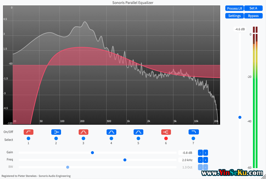 Sonoris并行均衡器是一种最小相位参数均衡器,支持Windows和Mac,支持VST、VST3、AU和AAX格式。该插件适合混音,尤其是母带处理。每个频段有固定的滤波器类型,2到6频段并联连接。滤波器采用反馈/前馈设计,提供切割和增强,类似于模拟图形均衡器。第3到5段是常Q铃,2和6段是搁板。第1和第7频段是低频/高频,与其他频段串联连接。