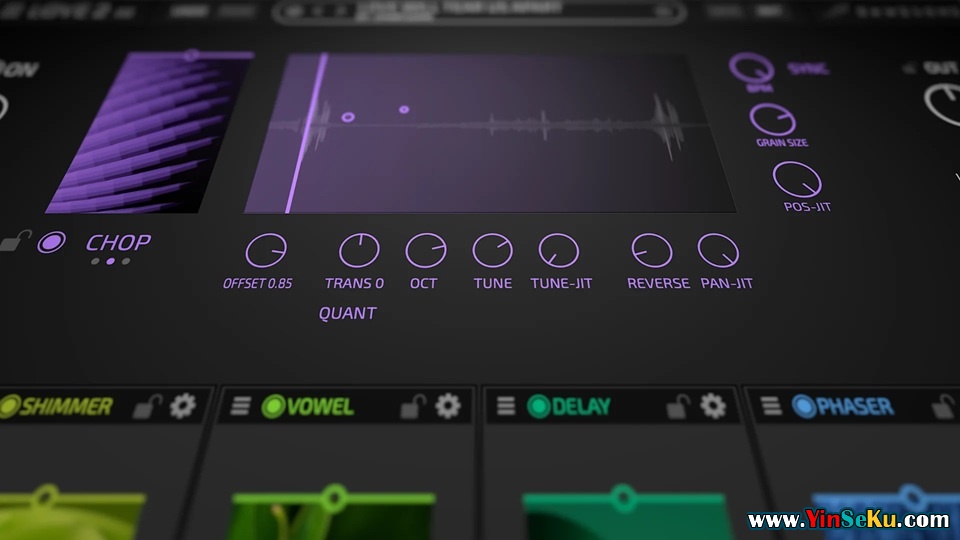 两个世界。一个流。顶部是一个经过音乐调谐的颗粒引擎,塑造粒子和运动。下方有六个空槽,可以让你细化色彩、空间和细腻。所有设备都设计得完美配合。你专注于手感。声音随之而来。