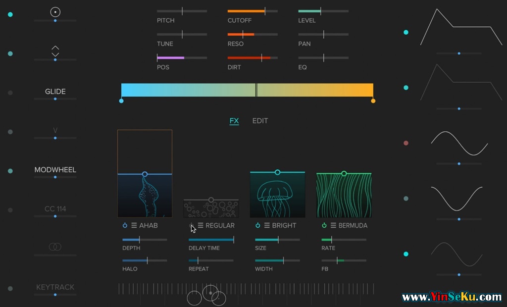 独特的“立体声”修改器,允许左右声道对大多数参数进行不同的偏移。