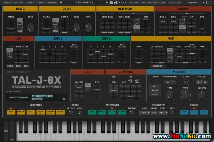 TAL-J8X 是一款乐器插件,模拟了80年代模拟合成器的声音,并加入了为该合成器增添新意的新功能。