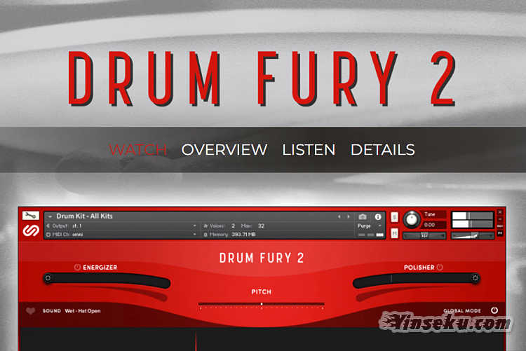 DRUM FURY 2 包括 51 个多采样乐器(可扩展至 438),由 3,426 个音频样本构建而成,生成 1.6 GB 样本库。所有样本均以44.1kHz/24位提供。
